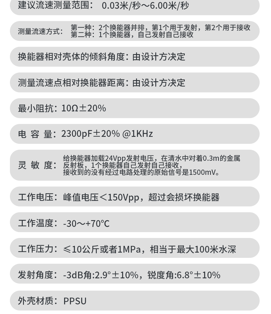 在2米的下水道内,对测量距离的精度要求1cm,请问用哪款换能器?